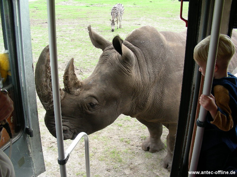 | Urlaub 2006 | Serengetipark - Nashorn: kann nur 2.5m weit sehen - hat aber 5m Bremsweg bei maximaler Geschwindikeit | 21/114 | |